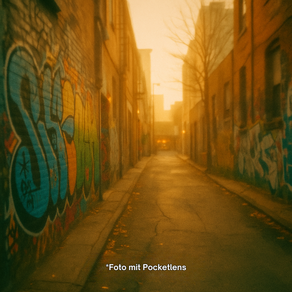Die Pocketlens ist bewusst so gebaut, dass sie nicht „perfekte“ Bilder liefert – sondern Bilder mit Charakter. Es sorgt für einen weichen, nostalgischen Look, wie man ihn von alten Filmkameras kennt. Nicht makellos – aber genau deshalb besonders.